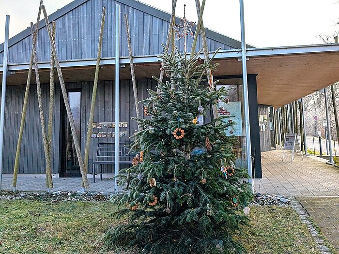 Im Zuge dessen wurde auch vor dem Naturium ein Christbaum aufgestellt. Diesen hat das Naturium-Team gemeinsam mit Eringer Kindern und Naturium-Guides mit selbstgebasteltem Weihnachtsbaumschmuck aus Naturmaterialien verschönert. Viele kreative Hände haben bei dieser gemütlichen Bastelaktion mit Lebkuchen und stimmungsvoller Weihnachtsmusik schöne Anhänger aus Zweigen, Wolle, Walnüssen, Kiefern- und Tannenzapfen gezaubert. Astscheiben wurden mit bunten Farben schön bemalt.